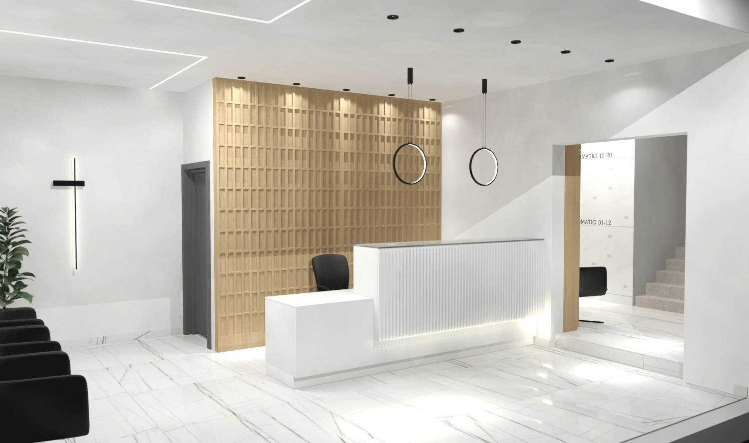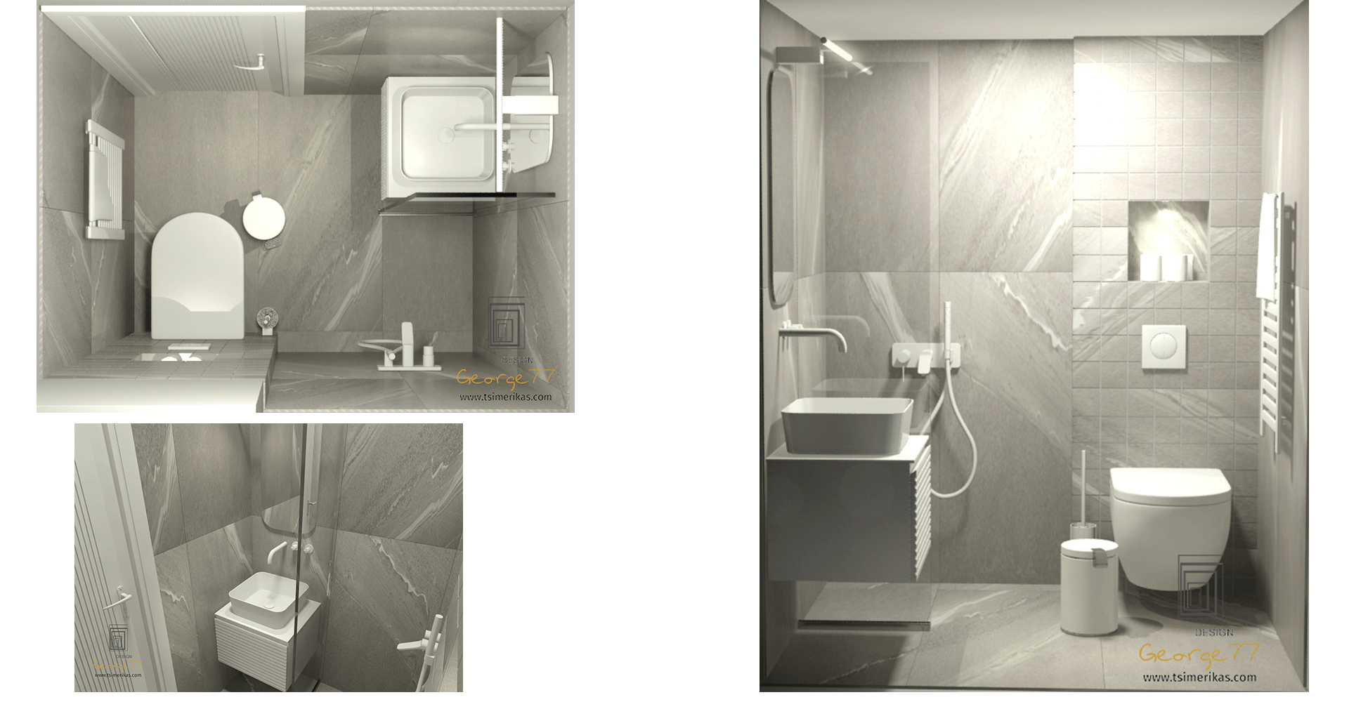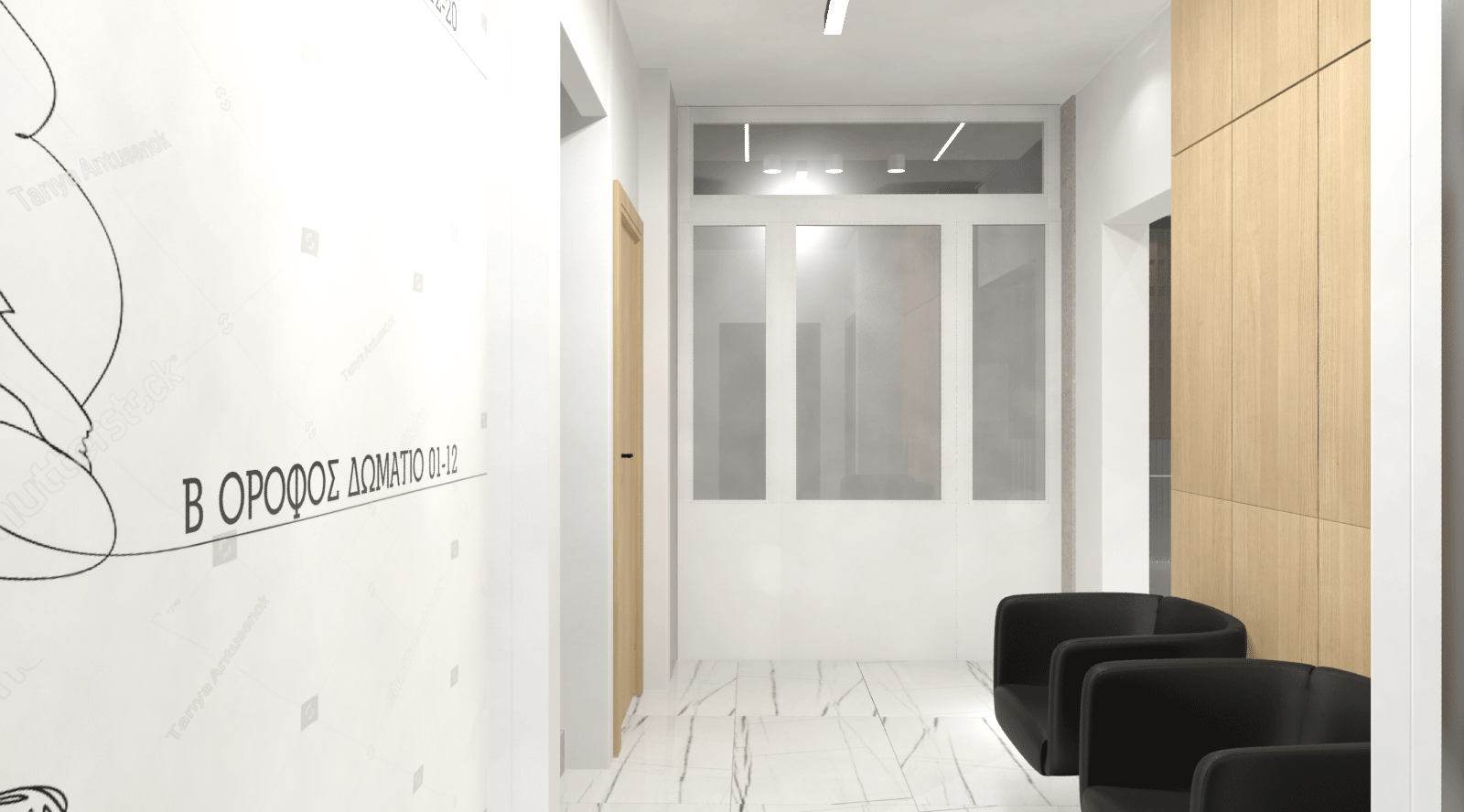 Στον εσωτερικό χώρο έχουμε τα απαλά χρώματα με μάρμαρο και ξύλο ,όπως και στα δεμάτια