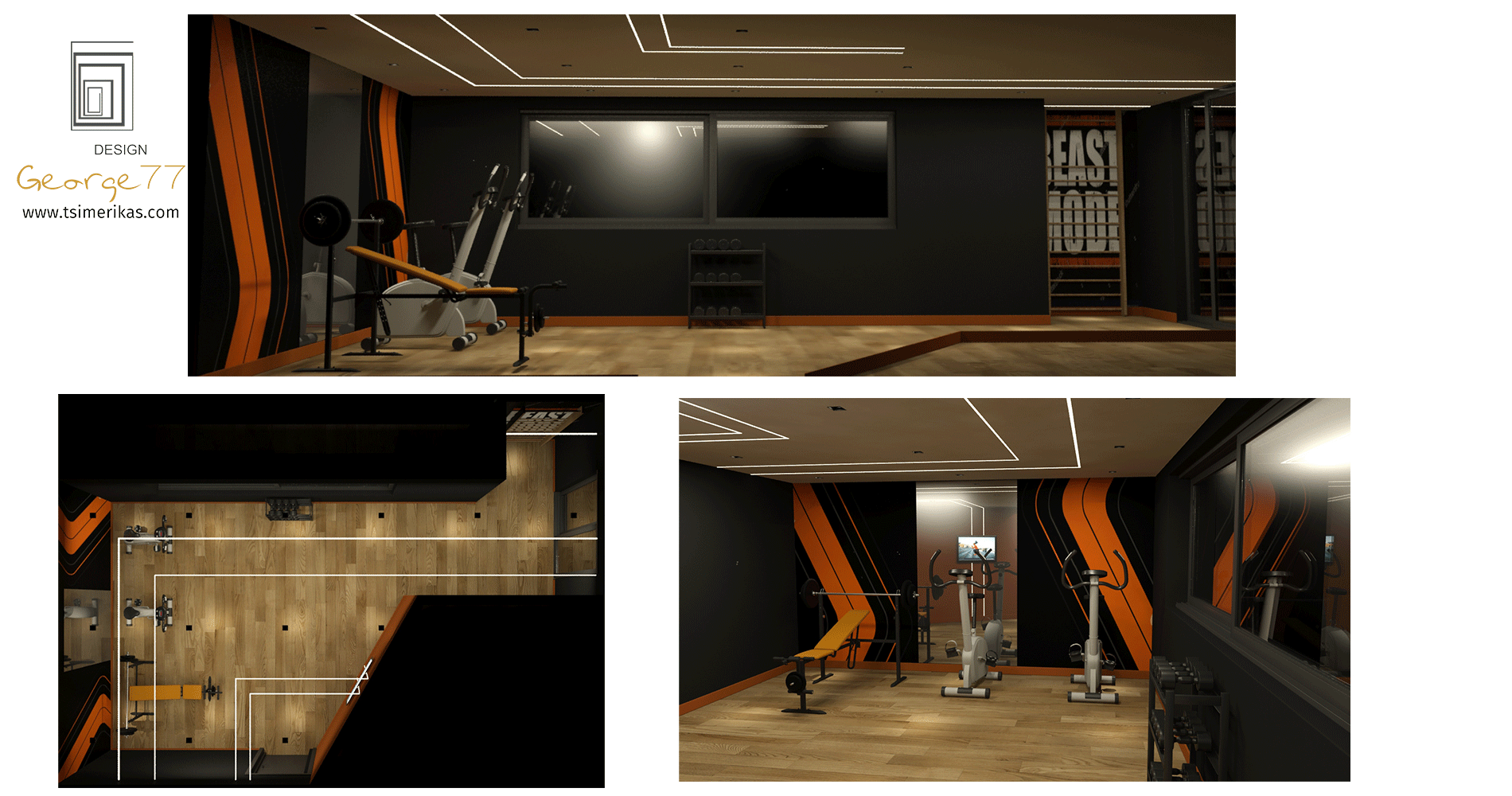Στο πάνω όροφο- γυμναστήριο- τουαλέτα- γραφείο- σαλέ
