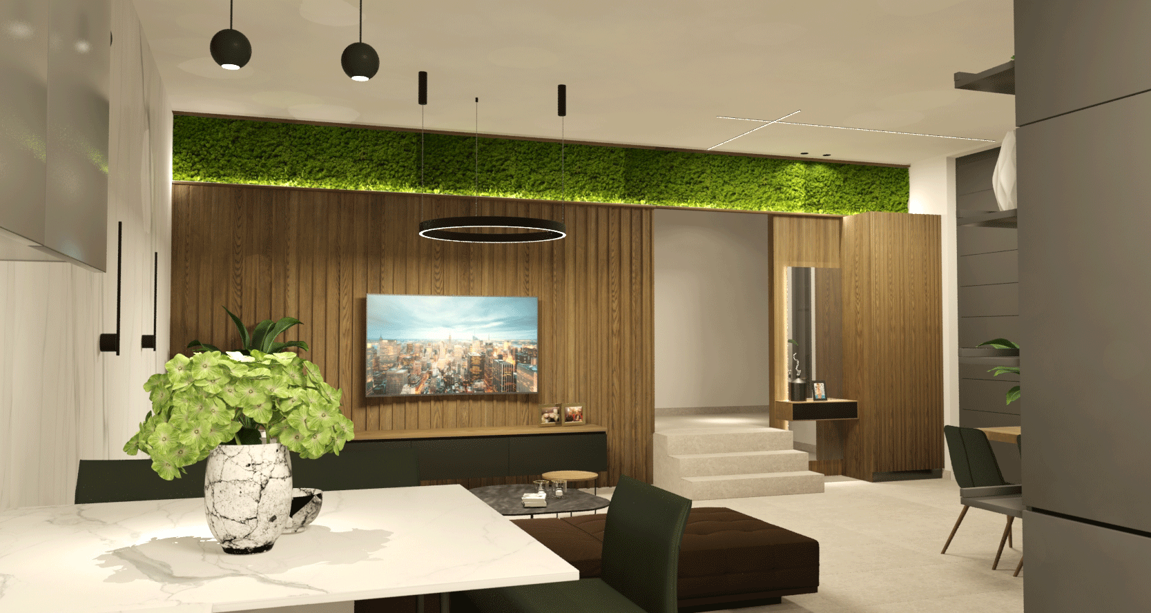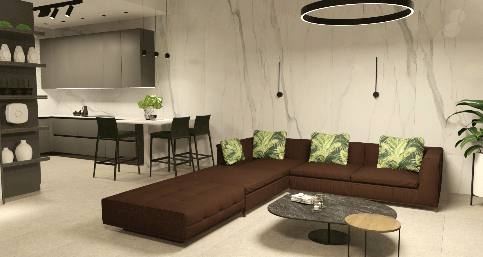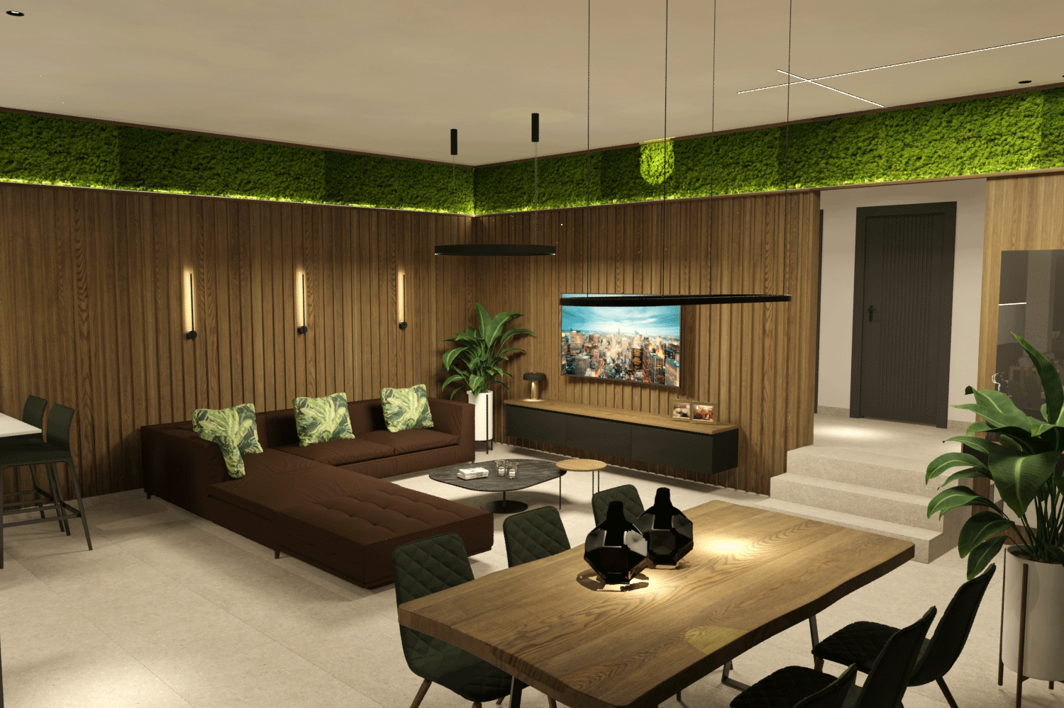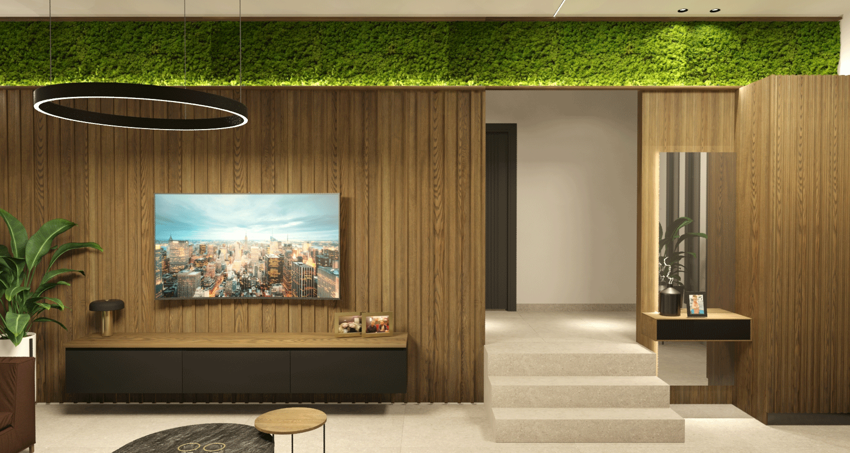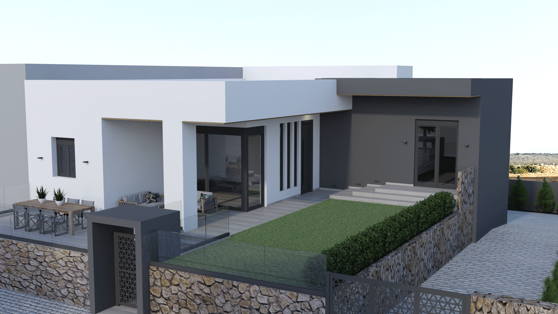 Επικρατή σε γήινα χρώματα το σπίτι και γενικά έχουμε μοντέρνες γραμμές