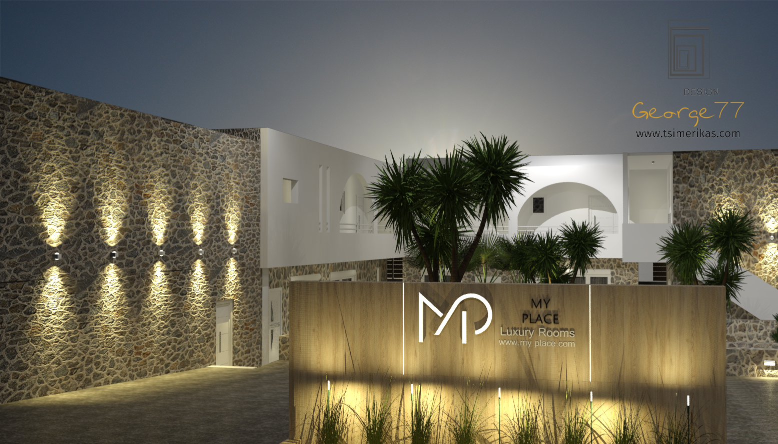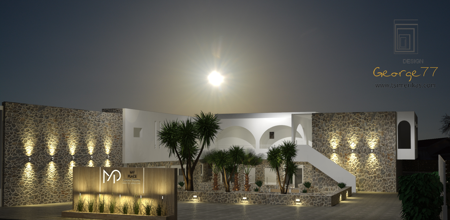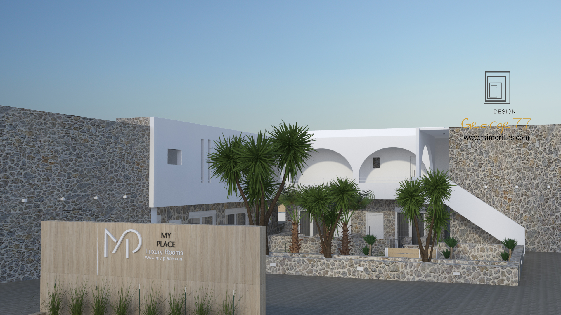 -Το MY PLACE LUXURY ROOMS βρίσκεται στο νησί Κως, η μακέτα φωτορεαλισμου σχεδιάστηκε 08-08-2024.