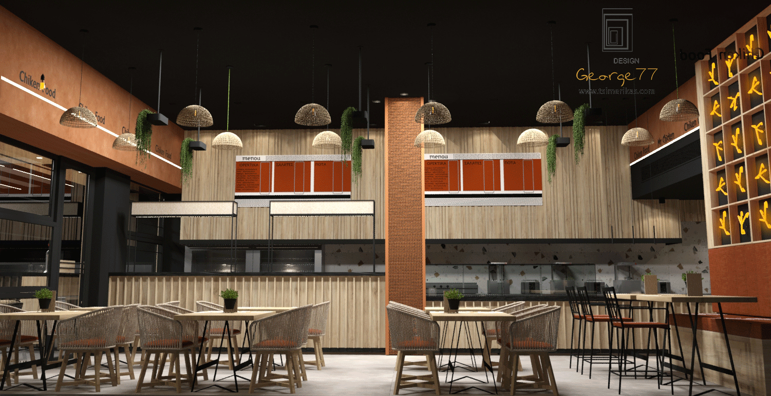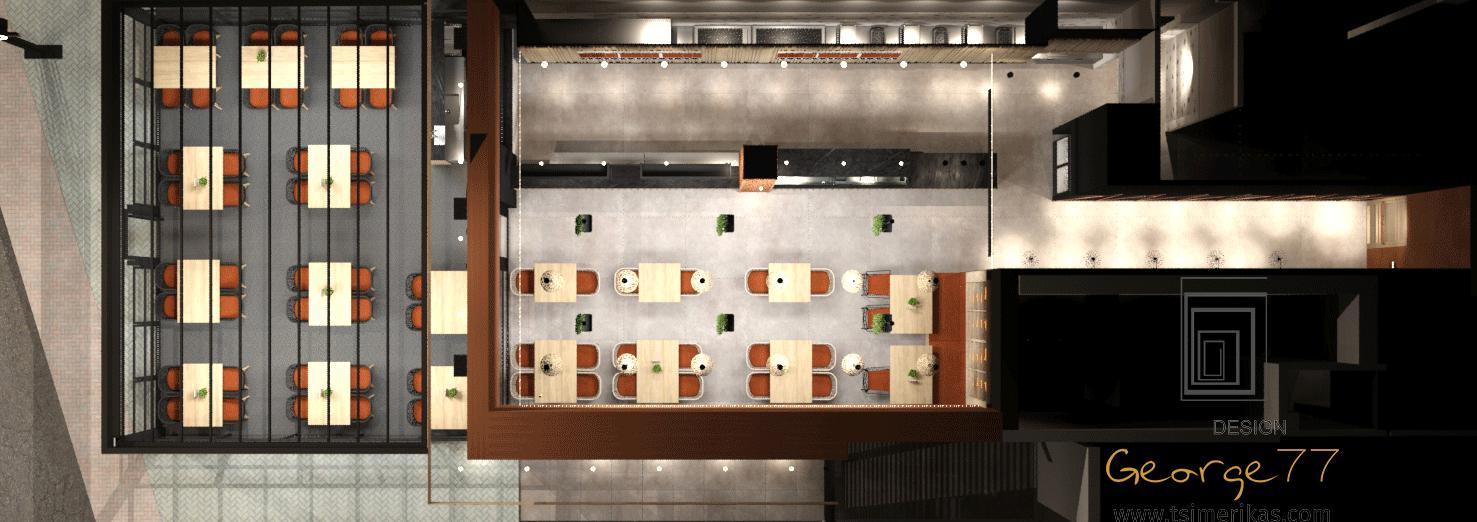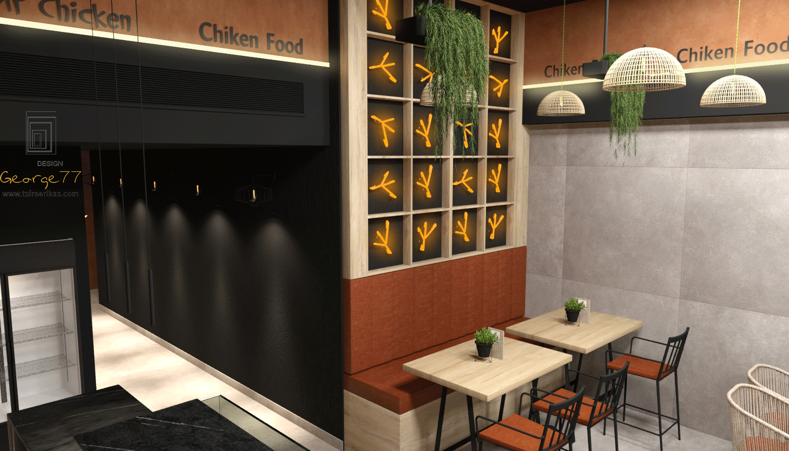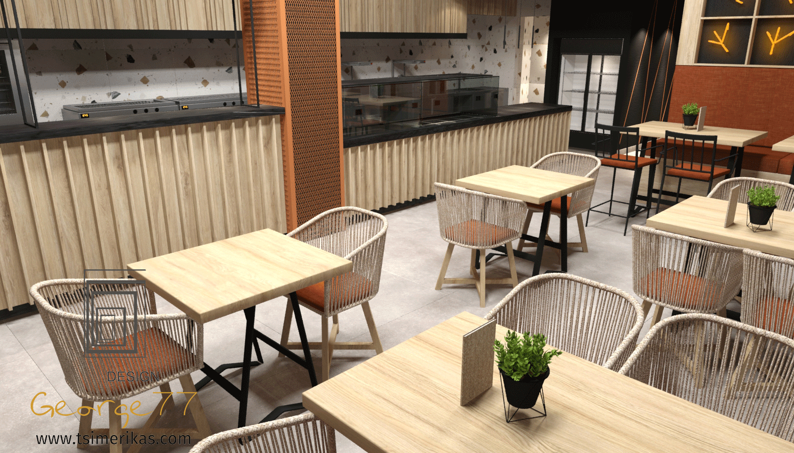 Το πορτοκάλι προϋπήρχε στο προηγούμενο μαγαζί και ήταν η βάση για να σχεδιαστεί αυτό το μαγαζί