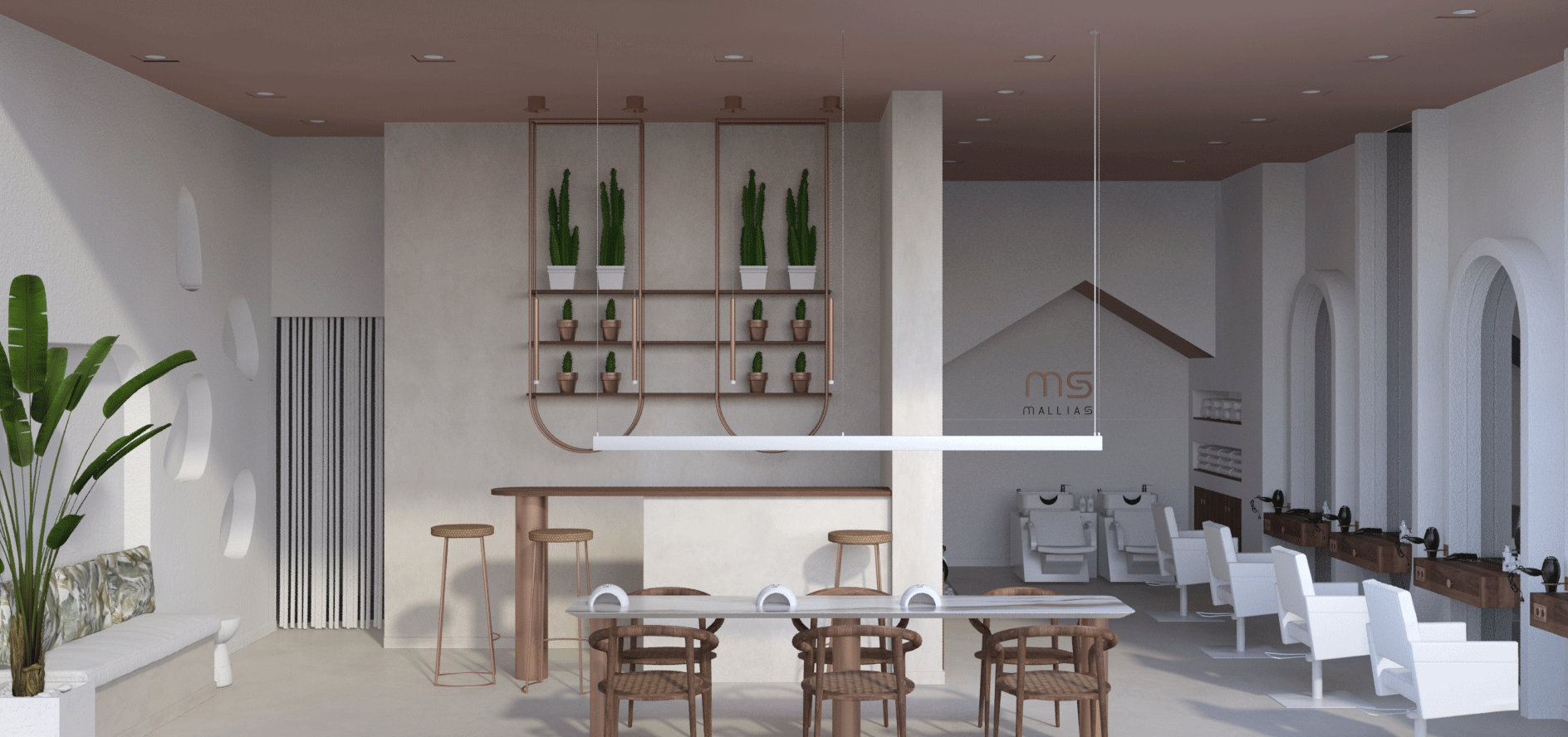 -Κυριαρχεί η τσιμεντοκονία και πινελιές του ξύλου και του χαλκού